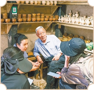 记者采访维吾尔族模制法土陶烧制技艺代表性传承人。李 红摄