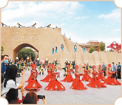 喀什古城举办活动迎接游客到来。王振强摄
